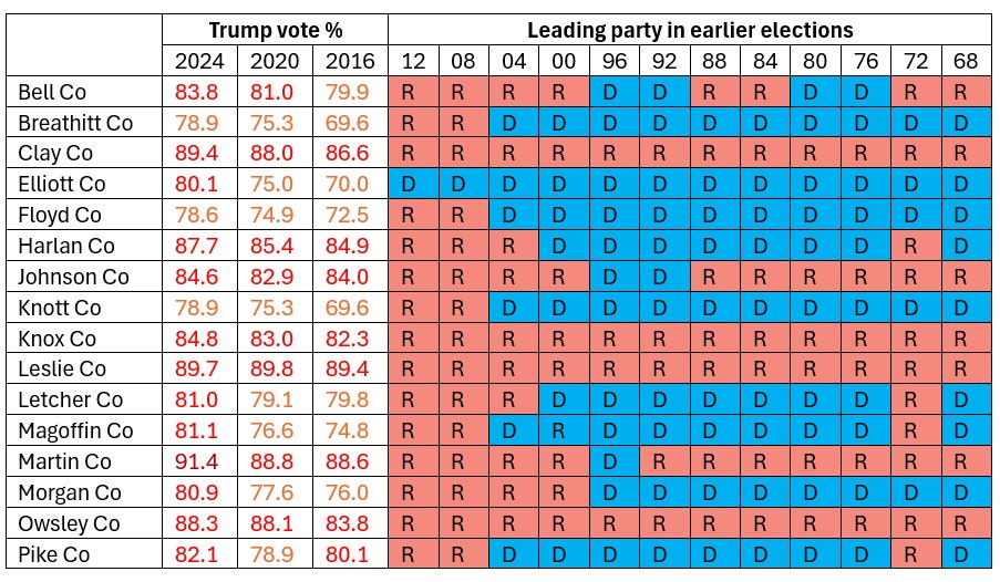 On paper, the voting record of Appalachian Kentucky, skewing heavily to Trump, looks like an exemplar of the polarisation of American politics. But could it possibly actually indicate something else? Could it imply an electorate in the small towns and rural communities of the region that refuses to be put in boxes or be tied to traditional party loyalties, but which is more eclectic in its politics and more fluid in its voting behaviour? Could the electoral geography of regions like Appalachia be less settled than has been popularly assumed?