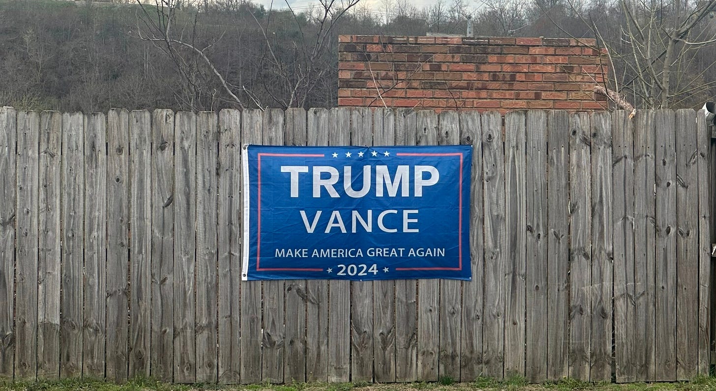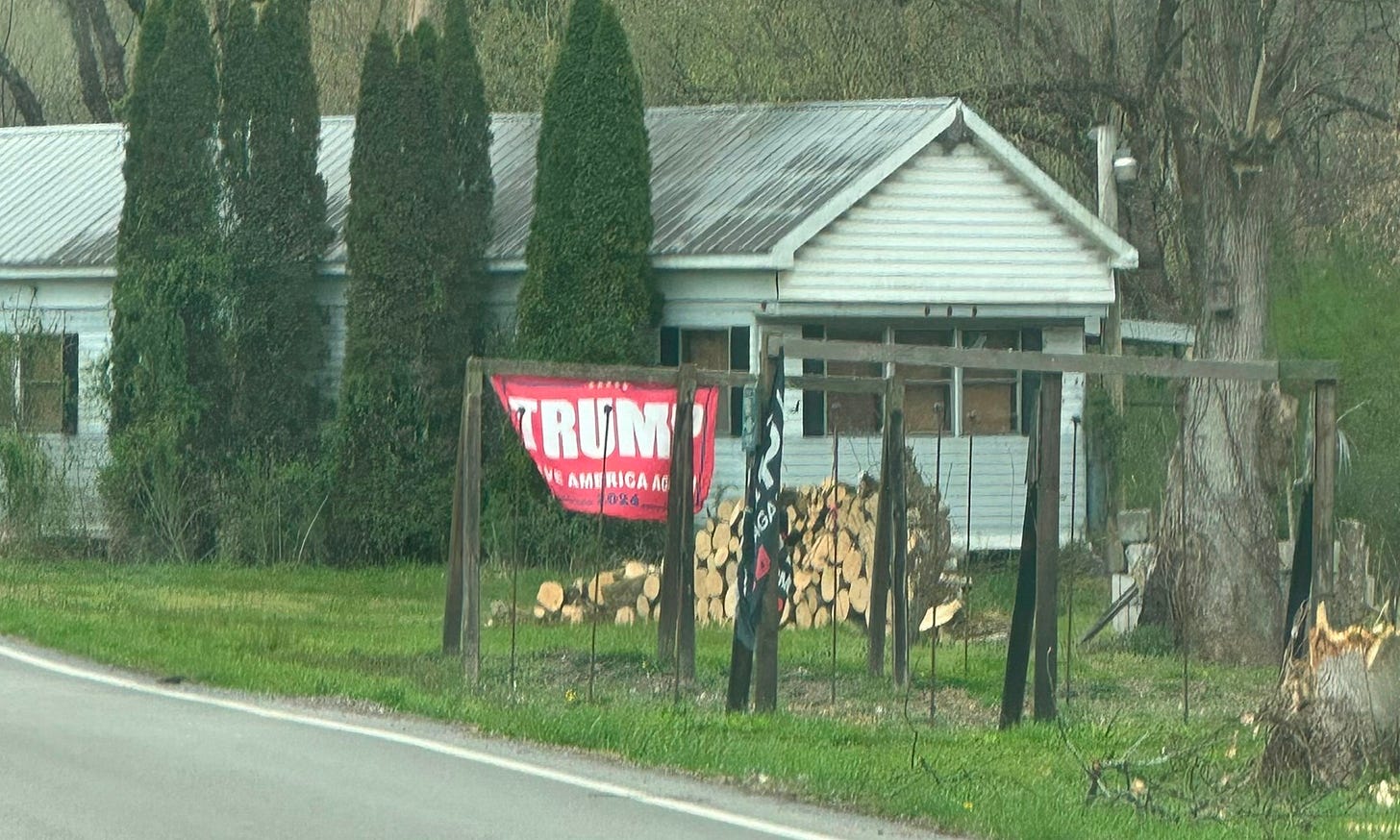 Support for President Trump in eastern Kentucky is genuine and proud. As we drove around the towns and valleys of the region, we repeatedly encountered Trump-Vance signs and banners, in yards and windows, or hanging from fences and porches. Sometimes they were accompanied by the Stars and Stripes; once or twice by confederate flags. On one occasion we saw a life-size cut-out of Rambo, with Trump’s face in place of Sly Stallone.